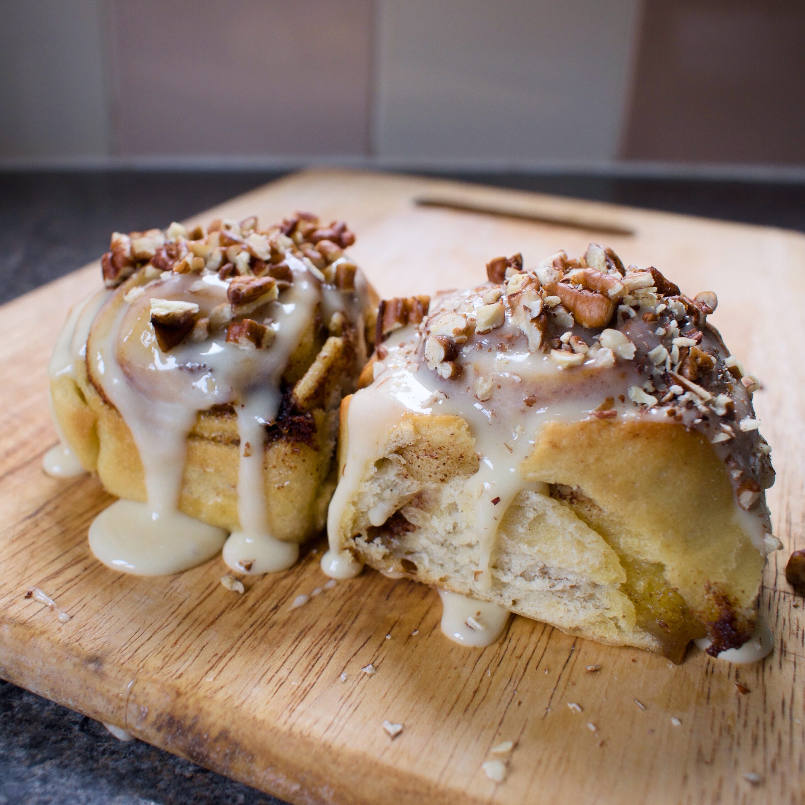 - Pour over each cinnamon roll and sprinkle over the chopped pecans.